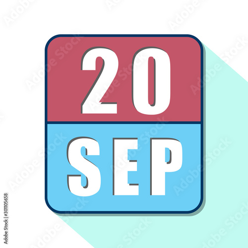 september 20th. Day 20 of month,Simple calendar icon on white background. Planning. Time management. Set of calendar icons for web design. autumn month, day of the year concept