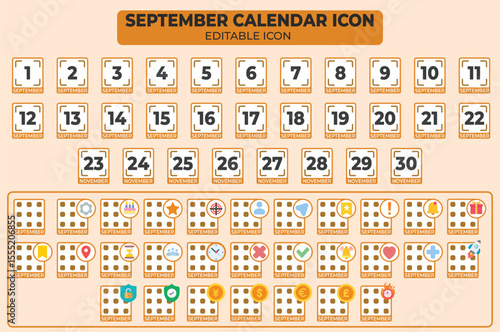 September calendar icon set featuring editable design elements and dates, suitable for scheduling and event planning