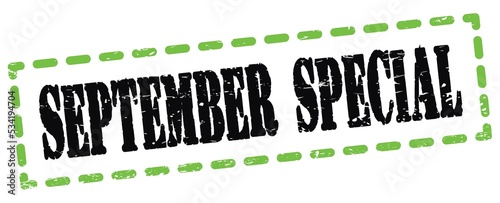 SEPTEMBER SPECIAL text written on green-black stamp sign.