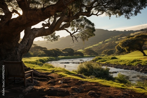 Serena Scene El Olivar Park, Lima, with centuries -old olive trees., generative IA