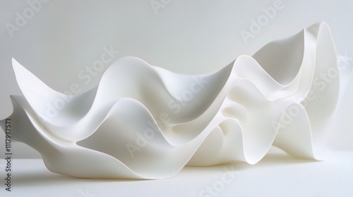 Serene Abstract Minimalist White Waves in Elegant Curved Design