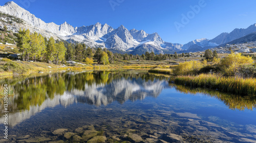 serene alpine lake reflects majestic mountains and vibrant autumn foliage