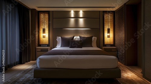 Serene and Elegant Modern Bedroom with Platform Bed and Ambient Lighting A peaceful and sophisticated space for relaxation and comfort featuring a platform bed sleek bedside tables