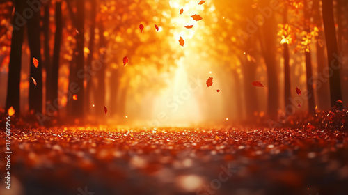 Serene autumn forest pathway illuminated by warm sunlight
