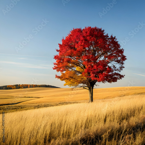 serene autumn landscape featuring a single