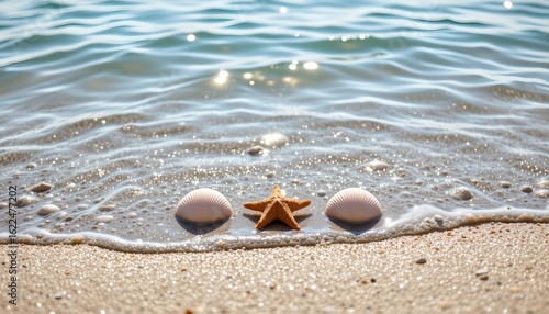 Serene Beach Scene with Seashells and Starfish