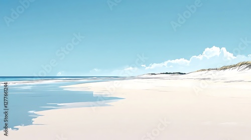 Serene Beachscape Under a Tranquil Blue Sky