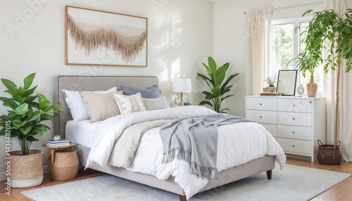 Serene Bedroom Oasis: Capture a cozy and inviting bedroom space, adorned with stylish decor and lush greenery.