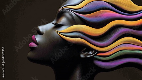 Serene Black woman with vibrant, flowing hair.