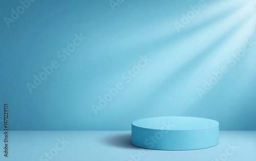 Serene Blue Product Display Platform with Light Rays Ideal for Branding and Marketing