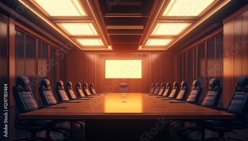 Serene Boardroom: A Luxurious Conference Room at Sunset
