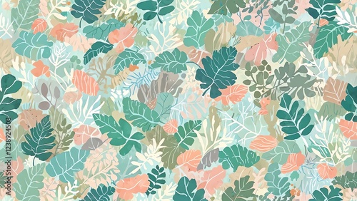Serene Botanical Abstract: A Pastel Paradise of Leaves and Flora