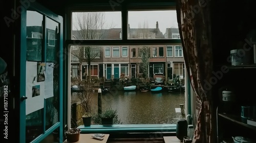 Serene Canal View from a Cozy Home Interior with Charming Decor