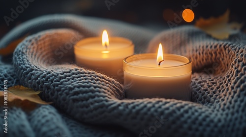 Serene Candlelit Setting for Relaxed Evenings and Cozy Home Atmosphere : Generative AI