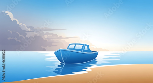 Serene Coastal Scene: Blue Boat on Calm Waters