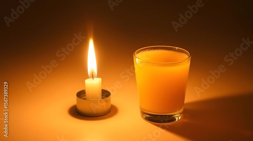 Serene composition featuring candle and orange juice for quiet moments