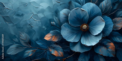 Serene Cyan Flower Amidst Grey Leaves and Contemporary Patterns