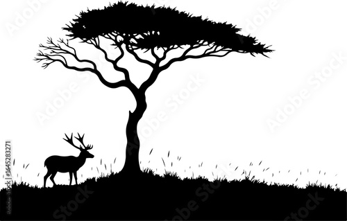 "Serene Deer and Tree Silhouette in Nature"