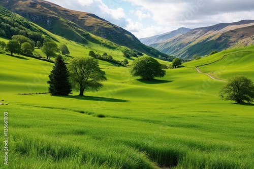 Serene Emerald Meadows: A Sweeping Landscape of Bright Scenery and Natural Beauty
