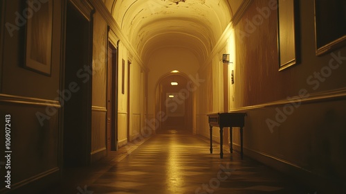 Serene Empty Hallway with Soft Ambient Lighting