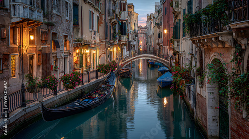 Serene Evening in a Venetian Canal with Colorful Buildings and Boats
