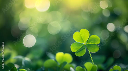 Serene Four-Leaf Clover in Lush Greenery and Dappled Light