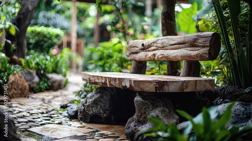Serene Garden Bench Surrounded by Nature