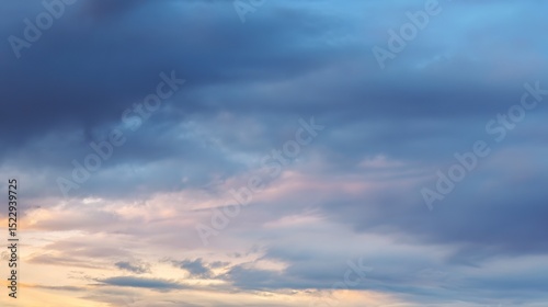 Serene Golden Dusk Blue Cloudy Sky Background – Warm-Cool Color Harmony, Soft Cloud Glows, Tranquil Evening Atmosphere