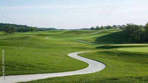 Serene Golf Course Landscape with Curved Path and Green Hills