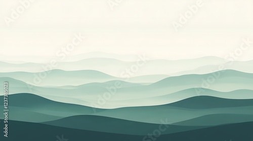 Serene Green Mountains Under a Misty Sky