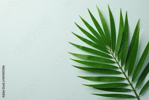 Serene Green Palm Frond on Light Blue Background, Ideal for Relaxation and Wellness Designs