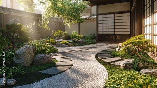 Serene Japanese Zen Garden at Sunrise