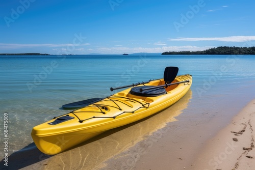 Serene Kayaking Adventure: Ready to Paddle on Calm Beach Waters