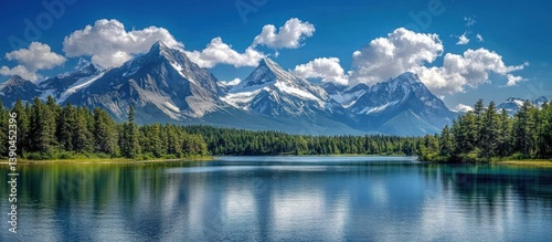 Serene lake mirroring snow-capped mountains under a vibrant sky