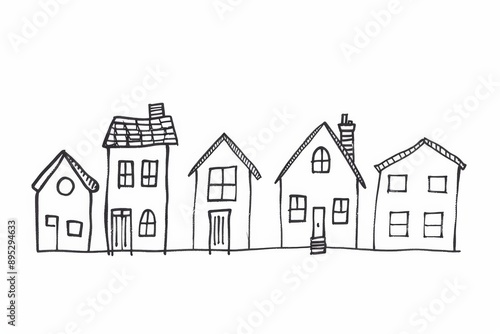 Serene landscape with minimalist outlines of simple houses in soft lighting