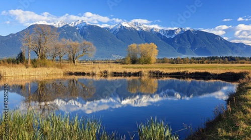 Serene Landscape with Mountains and Reflection in Calm Water