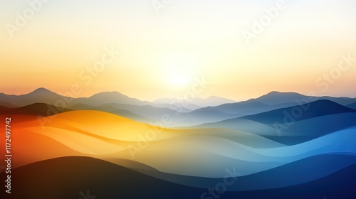 Serene Landscape with Warm Tones and Soft Mountain Silhouettes