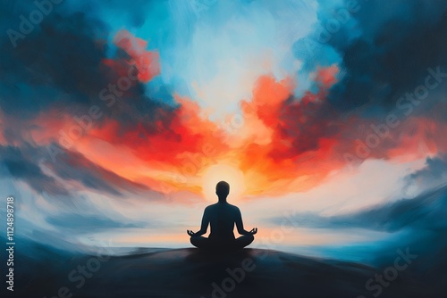 Serene Meditation at Sunset with Vibrant Sky - Peaceful Mindfulness Concept