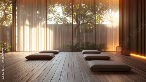 Serene Meditation Room with Wooden Flooring and Natural Light