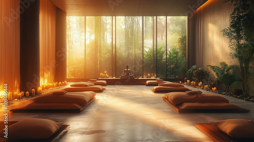 Serene meditation space with soft lighting and calming ambiance for mindfulness practice