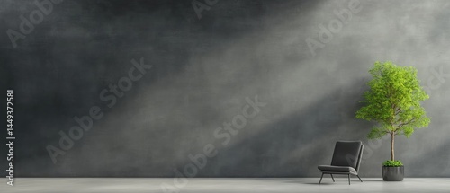 Serene Minimalist Interior: Chair, Plant, and Gray Wall