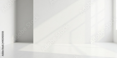Serene Minimalist Room Corner with Sunlight Streaming Through a Window, Ideal for Product Displays and Interior Design Presentations