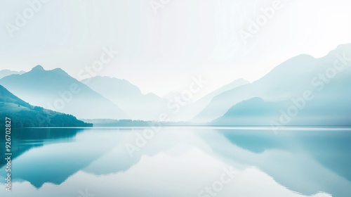 Serene Misty Mountains Reflecting on Calm Lake at Sunrise