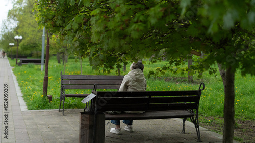 Serene moment in a park with benches under a leafy tree during springtime afternoon