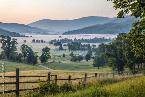 Serene Morning Landscape with Misty Valleys and Rolling Hills