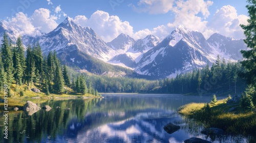 Serene Mountain Lake Reflection: A Breathtaking Digital Landscape