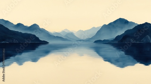 Serene Mountain Lake Reflection: A Misty Morning Landscape