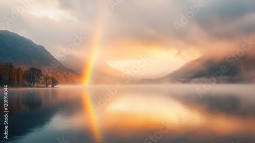 Serene Mountain Lake Sunrise Rainbow Reflection