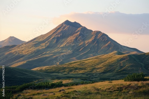 Serene mountain landscape at sunset