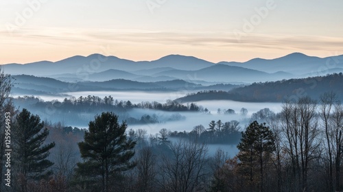 Serene Mountain Landscape with Misty Valleys at Dawn in the Blue Ridge Mountains